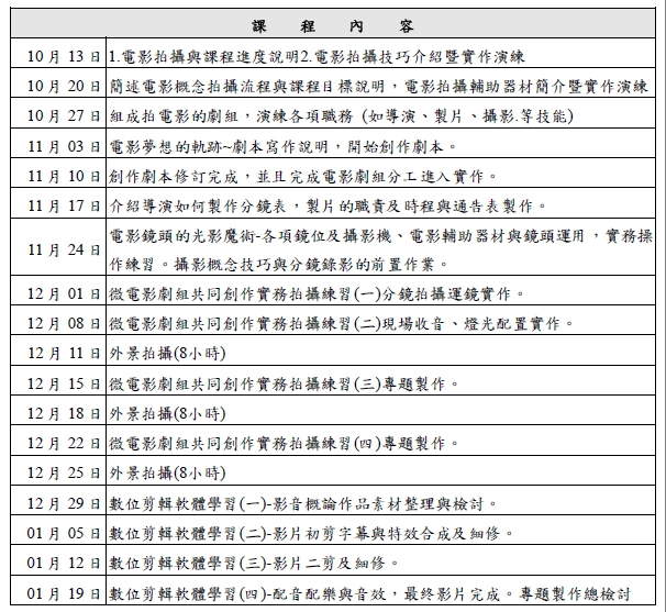 課程總時數:共60小時(含18小時外拍)